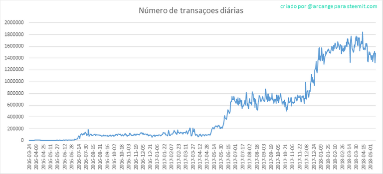 Este gráfico mostra o número de transações diárias. Isto dá uma ideia de toda atividade na blockchain.