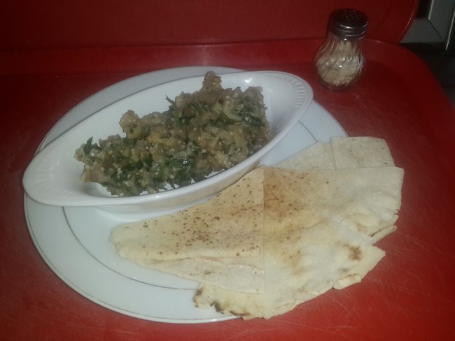 si vale. yo no soy fanatico. pero admito que antes no las comia. pero poco a poco le fui agarrando el gusto con el pasar de los años y ya luego de tener tanto tiempo trabajando con arabes he aprendido a usarla de varias maneras. te dijera el nombre en arabe de la crema. pero solo me se la fonetica hahaha no se como escribirlo . y las 7 especies , si es algo muy arabe. y a esta receta en cuestion solo le falto aceite de oliva, pero de ese no tenia en ese momento