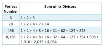 Pythagoras soon became famous all over Greece. He had around six hundred followers, who devoted themselves to learn and invent new theories and to construct their proofs. Besides Pythagoras theorem there are a lot of important mathematical ideas which came from Pythagoras and his followers. One of them is perfect number. As Pythagoras said a number's perfection depends on its divisors. If we divide the original number by some numbers and get the result as a whole number, then these numbers are called divisors. For example the divisors of number 6 are 1, 2 and 3. When the sum of the divisors of a number is greater than the number itself then the number is called an excessive number. For example divisors of number twelve is 1, 2, 3, 4, 6. If we add them up (1+2+3+4+6 =16) we get 16, which is bigger than the number 12. So, 12 is an excessive number. There is numbers if we add its divisors up, the result is less than the original number. For example, 10 is this kind of number. This kind of numbers are called defective numbers. But there are numbers if we add up its divisors, we get exactly the same number. They are called the perfect numbers. For example 6 has divisor 1, 2, 3. Their sum is exactly 6. So 6 is a perfect number.