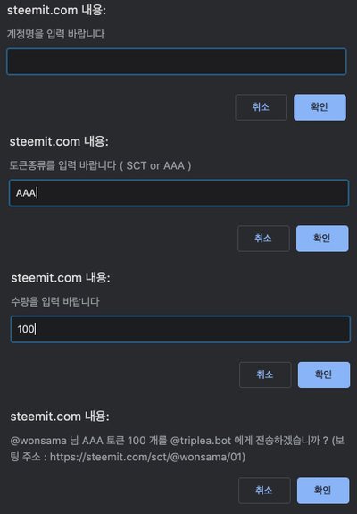 • 스팀엔진을 통하지 않고 손쉽게 토큰을 보팅 계정(@sct.voter, @triplea.bot)으로 전송하기 위함