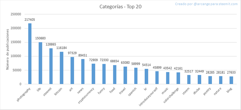 Este gráfico muestra la etiqueta ha sido el más utilizado para la publicación de los mensajes para toda la vida blockchain.
