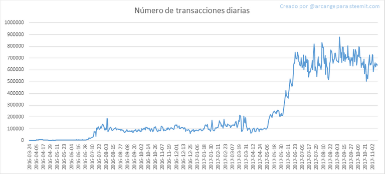 Este gráfico muestra el número de transacciones diarias. Esto le da una idea de toda la actividad en el blockchain.