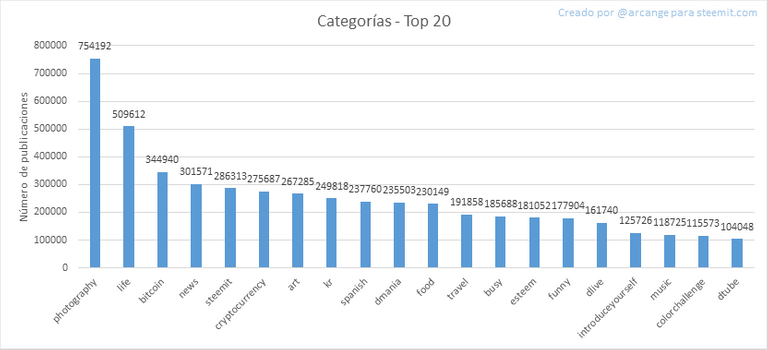 Este gráfico muestra la etiqueta ha sido el más utilizado para la publicación de los mensajes para toda la vida blockchain.