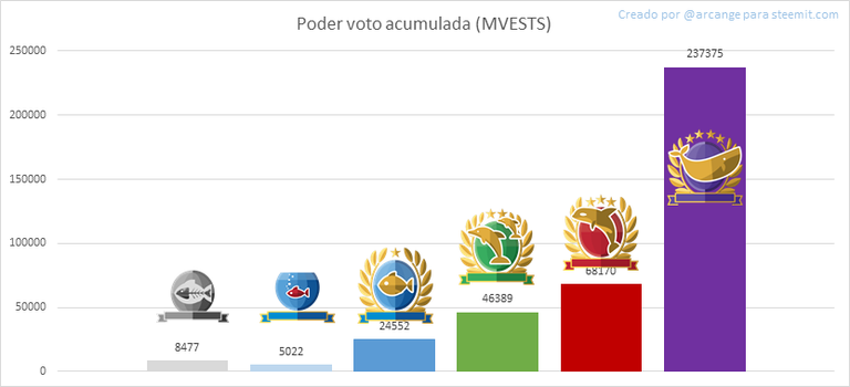Este gráfico muestra la distribución acumulativa del poder de voto. Permite ver el total de votos de cada nivel.