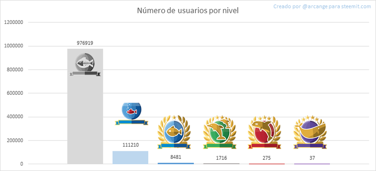 Este gráfico muestra la distribución del poder de voto (que ahora incluye los nuevos y los niveles de 'inactivo', 'Red Fish' - comprobar @steemitboard blog para más información sobre esto).
