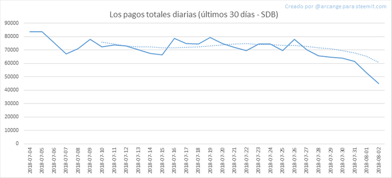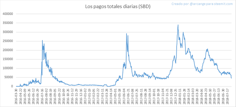 Estos gráficos muestran el total de los pagos distribuidos (mensajes y comentarios) para cada día.