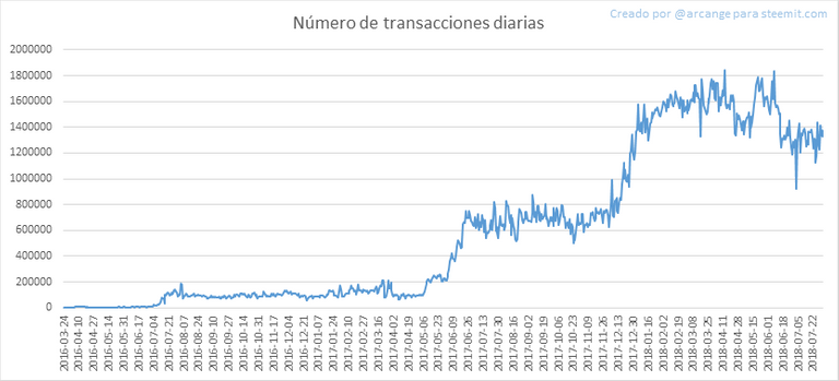 Este gráfico muestra el número de transacciones diarias. Esto le da una idea de toda la actividad en el blockchain.