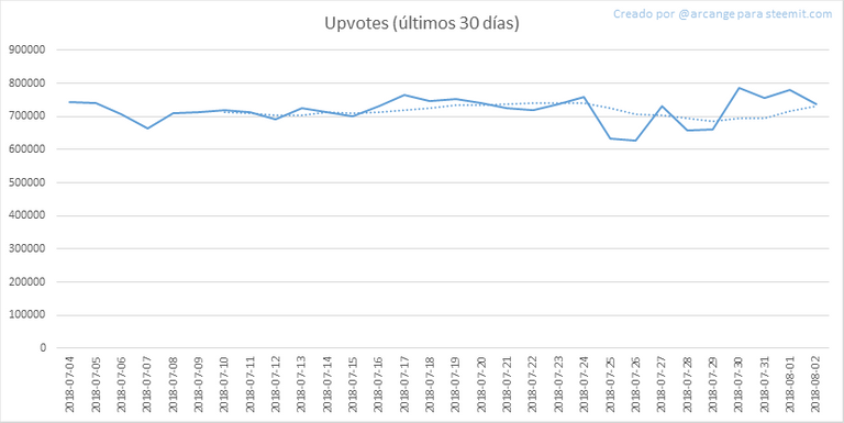 Estos gráficos muestran la evolución de la curación (upvotes) desde el inicio de la blockchain y durante los últimos 30 días.