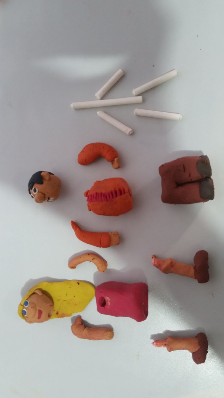 Se preguntarán, ¿El escenario lo dibuje yo?, si claro fue pintado por mí, en algún rincón de esta publicación les dejare el paso a paso en imágenes y texto, de todo lo que realice para esta obra. Para los personajes empecé realizando el esqueleto base para que se puedan sostener use palitos de papel de los que se usan para realizar paletas de chocolate, con un poquito de plastilina que tenía guardada por ahí le di cuerpo y forma a mis personajes para hacerlos más realistas y que se diera a entender lo que quería plasmar.