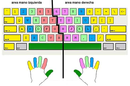 Para aumentar la eficiencia al escribir en la computadora lo primero que tenemos que hacer es utilizar todos los dedos al escribir, tal como lo muestra la imagen de arriba. No tiene que ser estrictamente como los colores lo indican, pero sí tratar de emplear cada dedo en la zona cercana que le corresponde según la imagen. Al principio es un poco incómodo pero si les gusta con el tiempo se acostumbrarán, y poco a poco comenzarán a escribir más rápido, más cómodo y quizás se acostumbren al punto de que no tienen que ver el teclado para saber que letra quieren teclear, sus dedos sabrán donde está. Esto se los recomiendo porque conozco amigos míos que solo emplean 2 dedos (nada más los índices) o máximo 4 dedos (índices y medios), lo que me parece un poco ineficiente. Tienes 10 dedos, ¡aprovechalos y úsalos todos! xD.