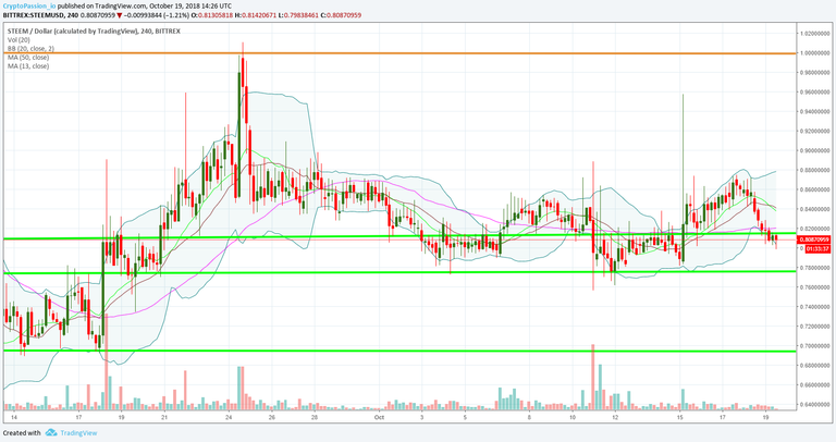 Steem tiene una línea de "soporte" alrededor de 0,81 $. El mercado al tener datos ambiguo se recomienda observar en el tiempo de horas.