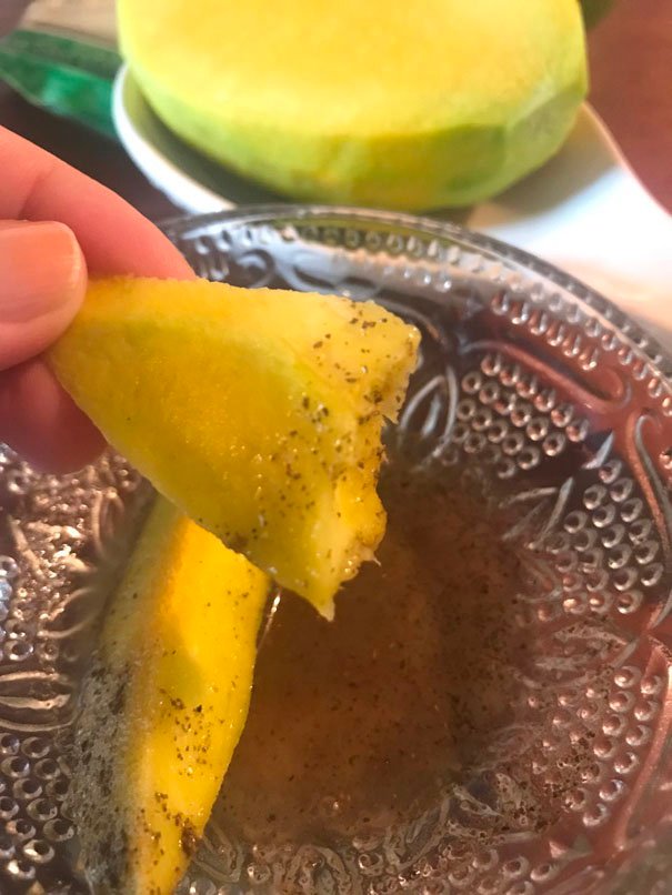 Que divino a mí me encanta el mango verde con limón, adobo y pimienta.