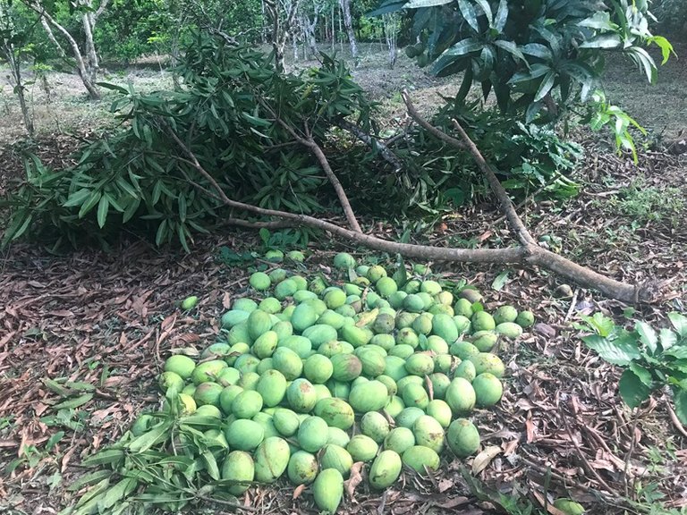 Todos esas mangas aún verdes, tiradas allí... mi mamá ideando en hacer una rica jalea, mi tía en hacer un espeso carato, yo solo podía pensar en que la mata de limón no me fallara y que en la alacena hubiese adobo. Todo salió a pedir de boca.