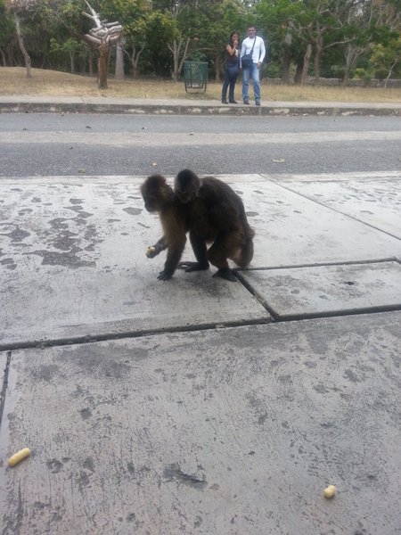 Hola amigos Steemians, el fin de semana tuve el placer de visitar uno de mis lugares favoritos, y de esparcimiento en la capital el zoológico de Caricuao, porque se puede tener contacto con los monos, ellos habitan el área libremente, poder darle alimentos, e interactuar con ellos, es muy divertido, antes de salir nos preparamos con cambures y mandarinas, para poder alimentarlos mientras nos entreteníamos, algo que parece ilógico pero lo tuvimos que hacer a escondidas de los guardias del zoológico, pero con la ayuda de una de las dueñas de un kiosco, que los conoce y los llama por el nombre, (y son muchos), fue muy grata la experiencia.