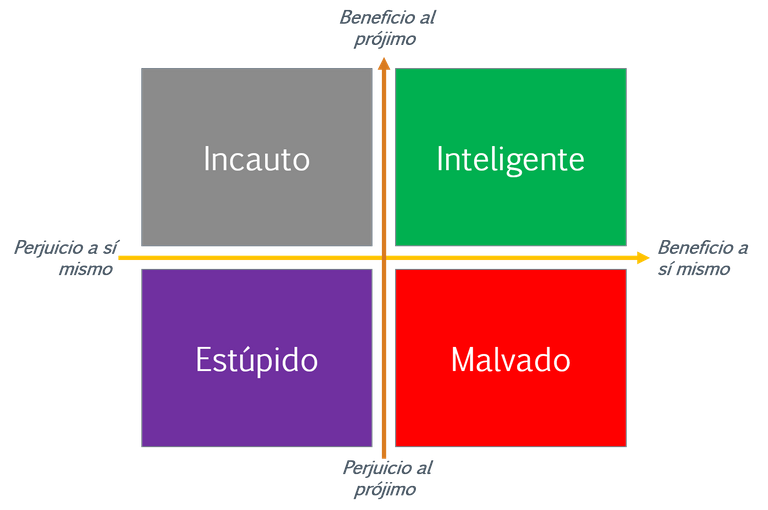 Según el profesor Cipolla, se puede reducir cualquier colectivo a cuatro grupos, y el criterio para clasificarlos se basa en el resultado que produce la interacción entre el individuo y los demás.
