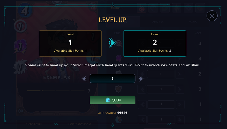 At first, there are 20 Points to use and each Level Up grants 1 more Point. It is possible to advance multiple Levels at once. This is going to be a major relief to the Whales who should have a great deal of Glint left to spare (as long as they are not going after Gold Foil and other ultra expensive purchases).