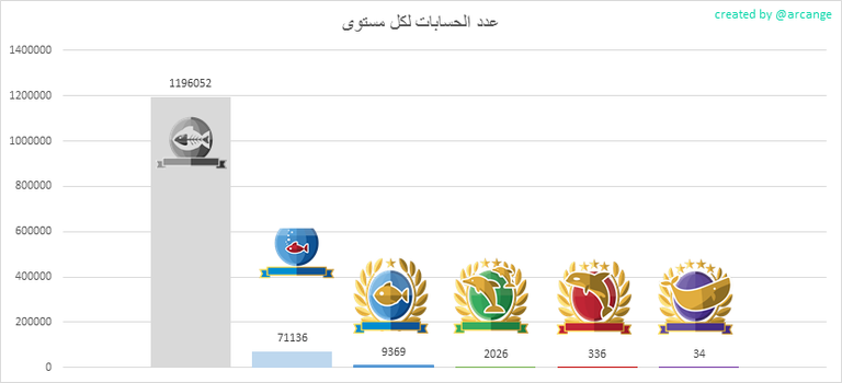 يوضح هذا الرسم البياني عدد المستخدمين وفقًا لقوتهم التصويتية (ويشمل الآن المستويات الجديدة غير النشطة و الأسماك الحمراء - تحقق من مدونة @steemitboard لمزيد من المعلومات حول هذا).