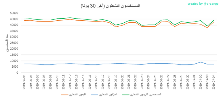 تستند جميع المعلومات الواردة في هذا التقرير على البيانات التي تم جمعها من blockchain حتى منتصف الليل بتوقيت UTC 2019-07-04. الهدف من هذا التقرير هو أن نوفر لك رؤية واضحة حول ما يحدث يوميًا في مجموعة Steem blockchain.