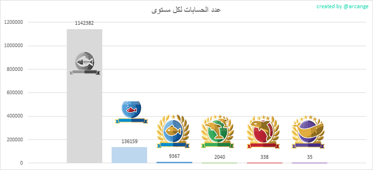 يوضح هذا الرسم البياني عدد المستخدمين وفقًا لقوتهم التصويتية (ويشمل الآن المستويات الجديدة غير النشطة و الأسماك الحمراء - تحقق من مدونة @steemitboard لمزيد من المعلومات حول هذا).