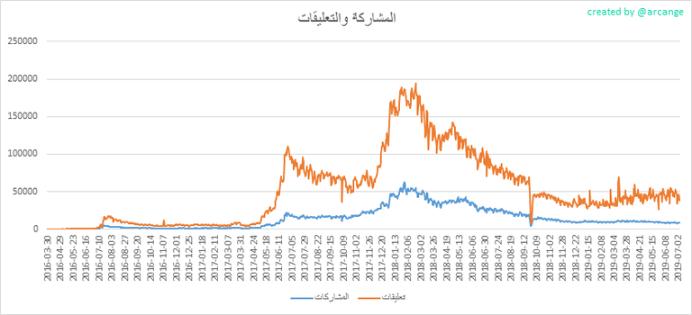تظهر هذه الرسوم البيانية تطور المشاركات والتعليقات طوال عمر blockchain الكامل ولمدة 30 يومًا.
