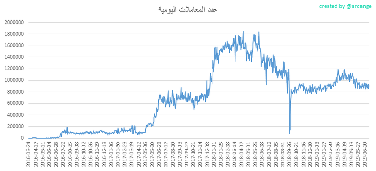 يوضح هذا الرسم البياني عدد المعاملات اليومية. هذا يعطيك فكرة عن النشاط كله على blockchain.