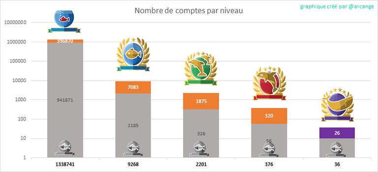 La partie grise de chaque colonne indique le nombre de comptes inactifs (voir la définition d'inactif ci-dessus).