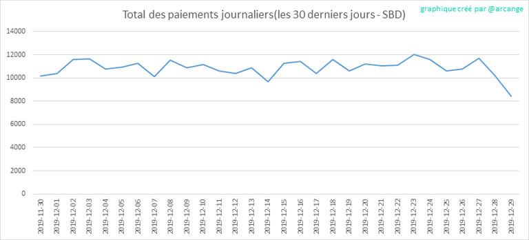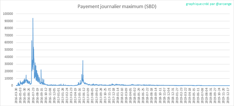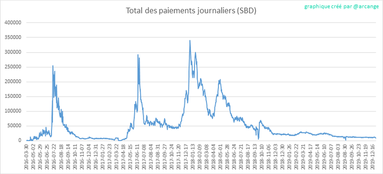 Ces graphiques montrent le total des paiements distribués (publications et commentaires) pour chaque jour.