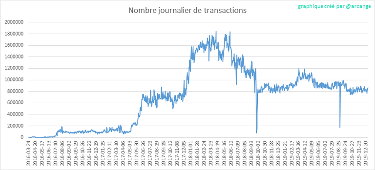 Ce graphique montre le nombre de transactions quotidiennes. Cela vous donne une idée de l’ensemble de l’activité sur la blockchain.