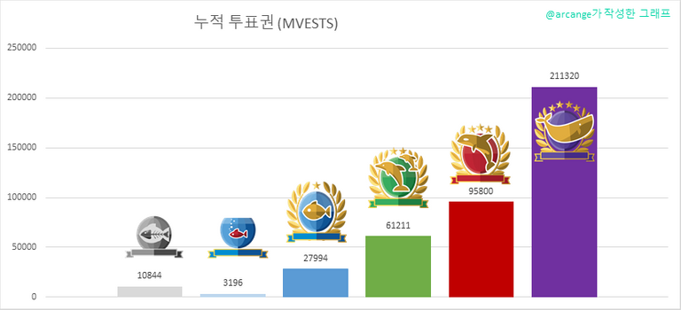 이 그래프는 보팅 파워의 분포도를 보여줍니다. (비활성화 유저와 빨간 물고기 레벨이 포함되어 있습니다. 더 많은 정보는 @steemitboard 블로그를 참고해주세요.).