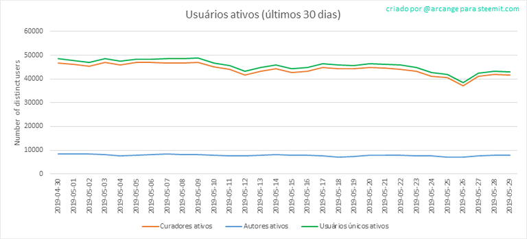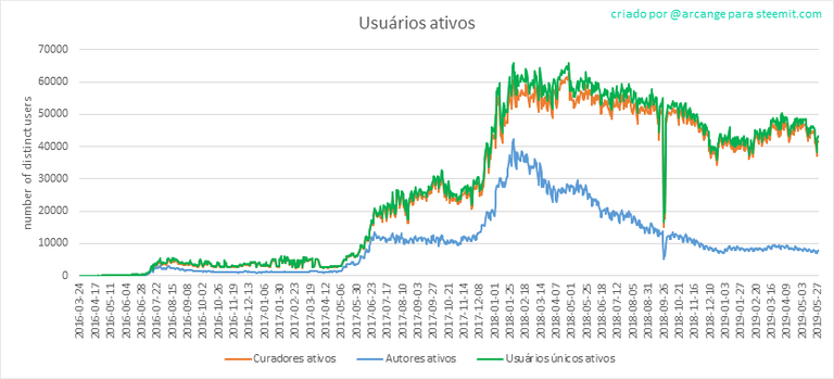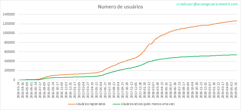 O último gráfico é um resultado mensal dos usuários ativos. Isso permite comparar o valor do blockchain Steem para aqueles que costumam postar em outras redes sociais.