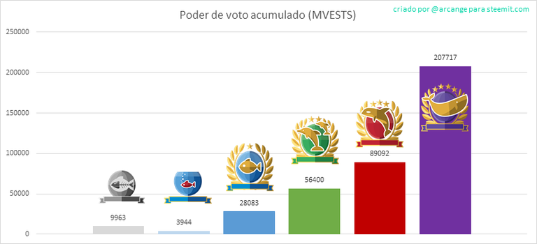 Este gráfico mostra o número de usuários de acordo com seu poder de voto (isso inclui os novos "inativos" e os "Red Fish" - cheque o blog @steemitboard para maiores informações sobre isso).