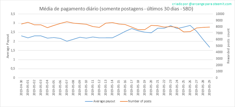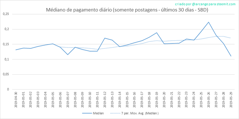 Este gráfico mostra a média de pagamentos por post nos últimos 30 dias.