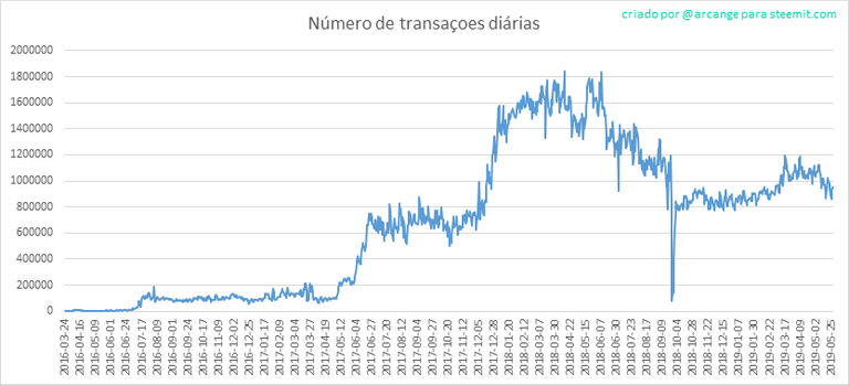 Este gráfico mostra o número de transações diárias. Isto dá uma ideia de toda atividade na blockchain.