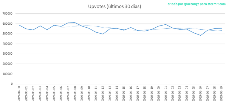 Esses gráficos mostram a evolução da curadores (upvotes) desde o início do funcionamento da blockchain e dos últimos 30 dias.