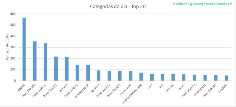 Este gráfico mostra as tag’s mais utilizadas para publicar postagens, desde o inicio do funcionamento da blockchain.