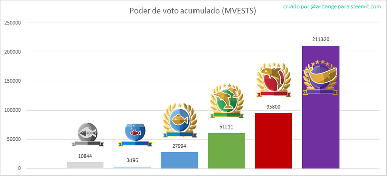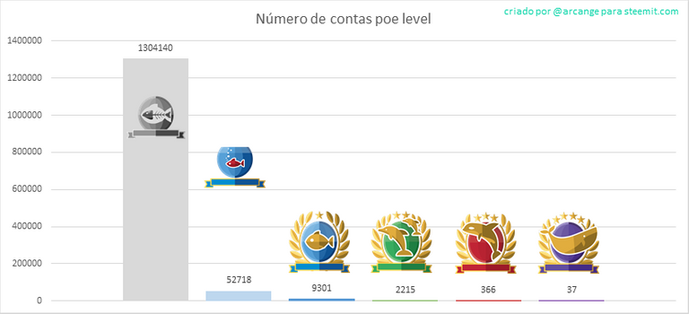 Este gráfico mostra o número de usuários de acordo com seu poder de voto (isso inclui os novos "inativos" e os "Red Fish" - cheque o blog @steemitboard para maiores informações sobre isso).
