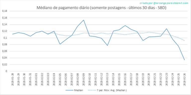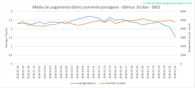 Este gráfico mostra a média de pagamentos por post nos últimos 30 dias.