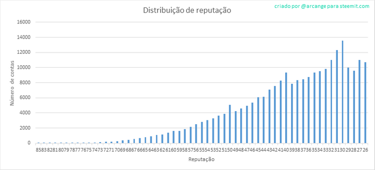 Este gráfico mostra a distribuição de reputação entre os usuários. Contas com reputação menor que 25 foram removidas do gráfico para melhor visualização.