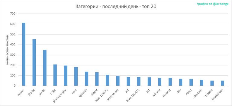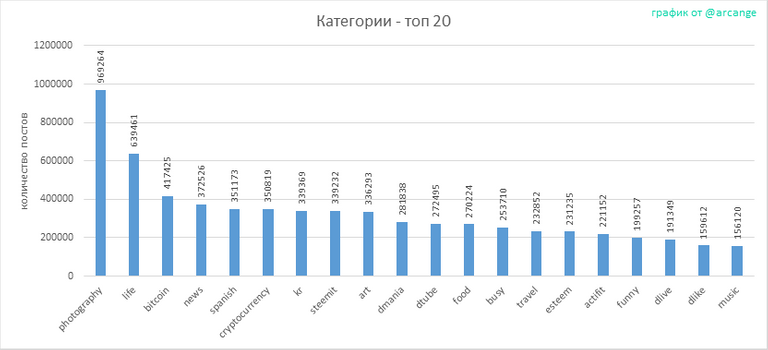 Этот график показывает категории, которые были использованы для публикации постов с момента создания.
