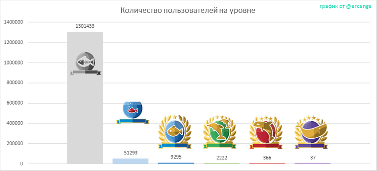 Этот график показывает количество пользователей в зависимости от их ранга. Он включает также неактивных пользователей