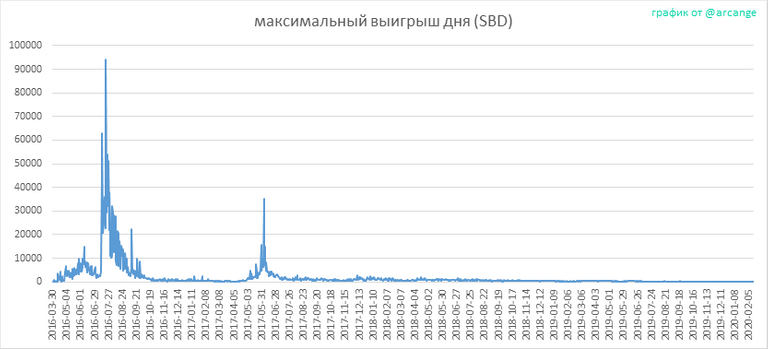 Эти графики показывают максимум выплат за пост (или комментарий) за каждый день.