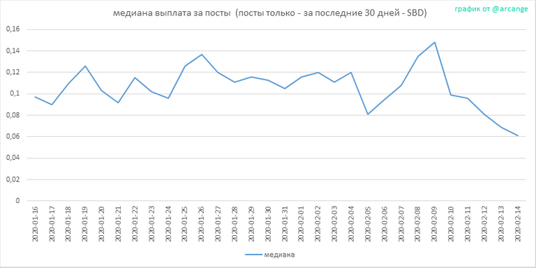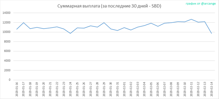 Этот график показывает ежедневную сумму выплат для всех постов и комментариев.
