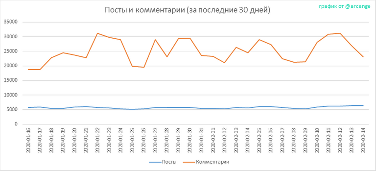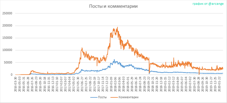 Эти графики показывают изменения количества постов и комментариев, с момента создания и в течение последних 30 дней.