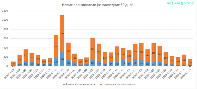 Внимание: этот график является динамическим! Пользователь может зарегистрироваться в один день и стать активным несколько дней спустя. Таким образом, количество активных пользователей за конкретные даты может измениться со дня на день.