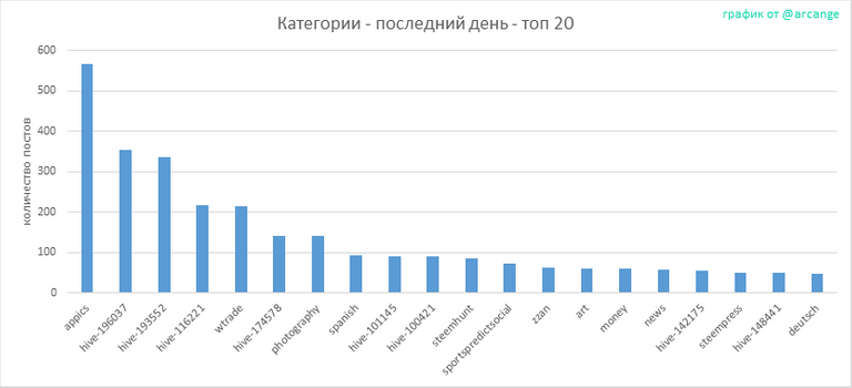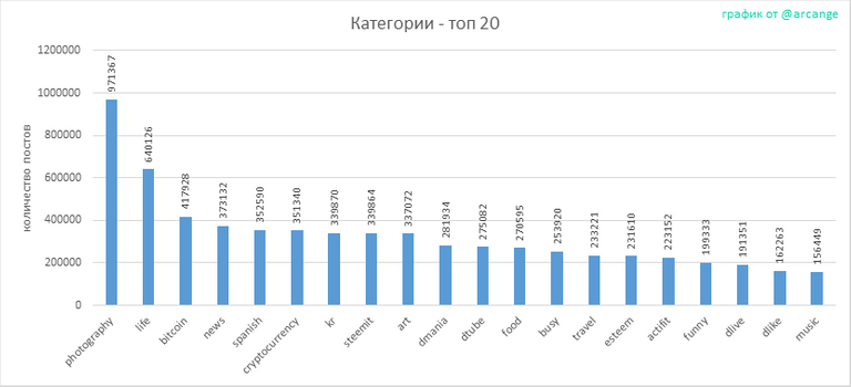 Этот график показывает категории, которые были использованы для публикации постов с момента создания.