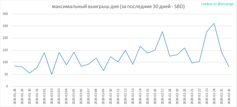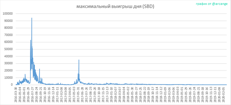Эти графики показывают максимум выплат за пост (или комментарий) за каждый день.