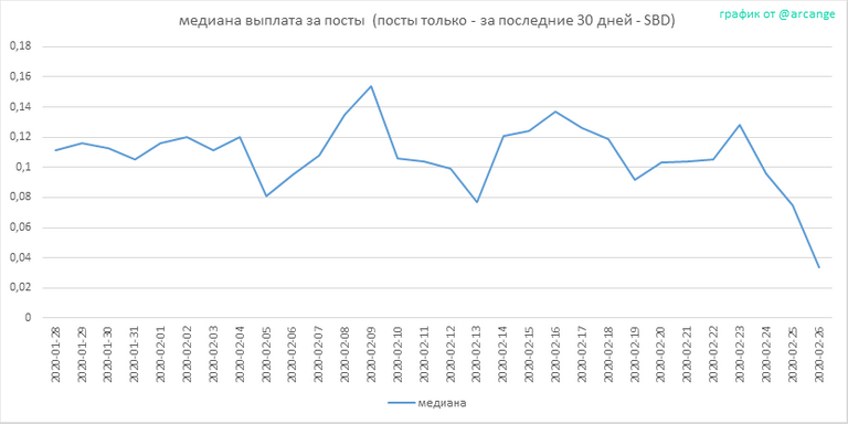 Этот график показывает ежедневную сумму выплат для всех постов и комментариев.