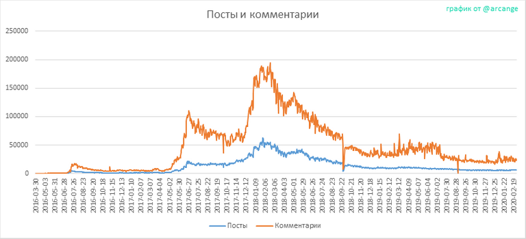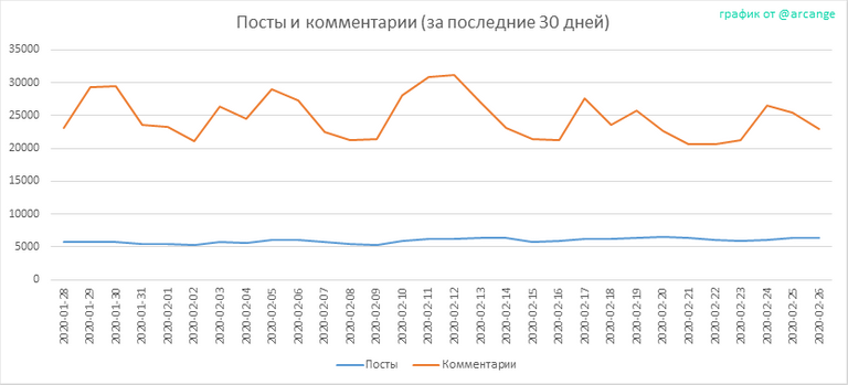 Эти графики показывают изменения количества постов и комментариев, с момента создания и в течение последних 30 дней.