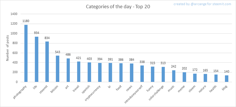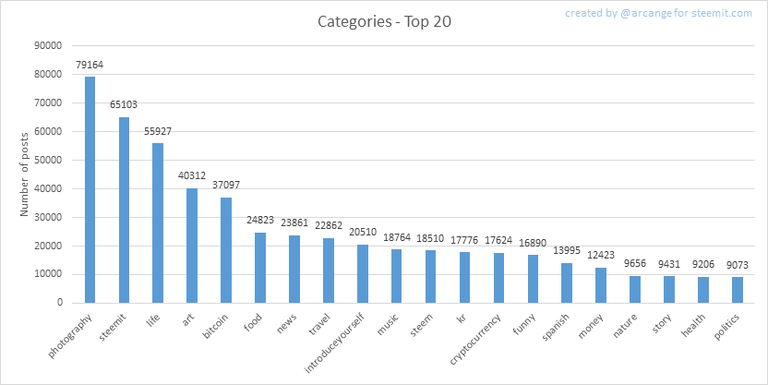 This graph shows the tag has been the most used for publishing posts for the whole blockchain lifetime.