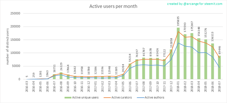 The last graph is a monthly summary of the active users. It allows you to compare Steemit's values to those one usualy published by other social networks.